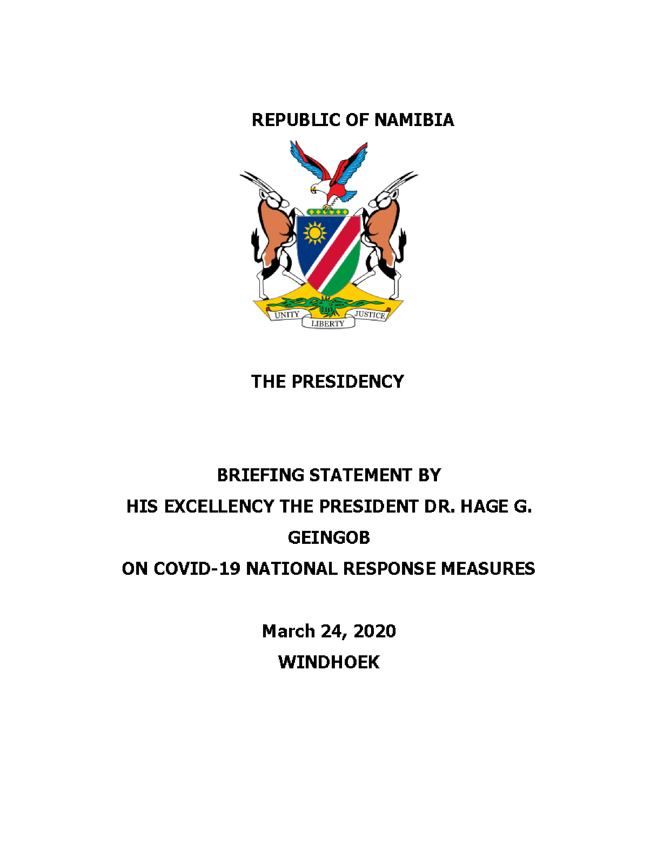 BRIEFING STATEMENT HAGE GEINGOB COVID-19 NATIONAL RESPONSE MEASURES_March 24 2020 |