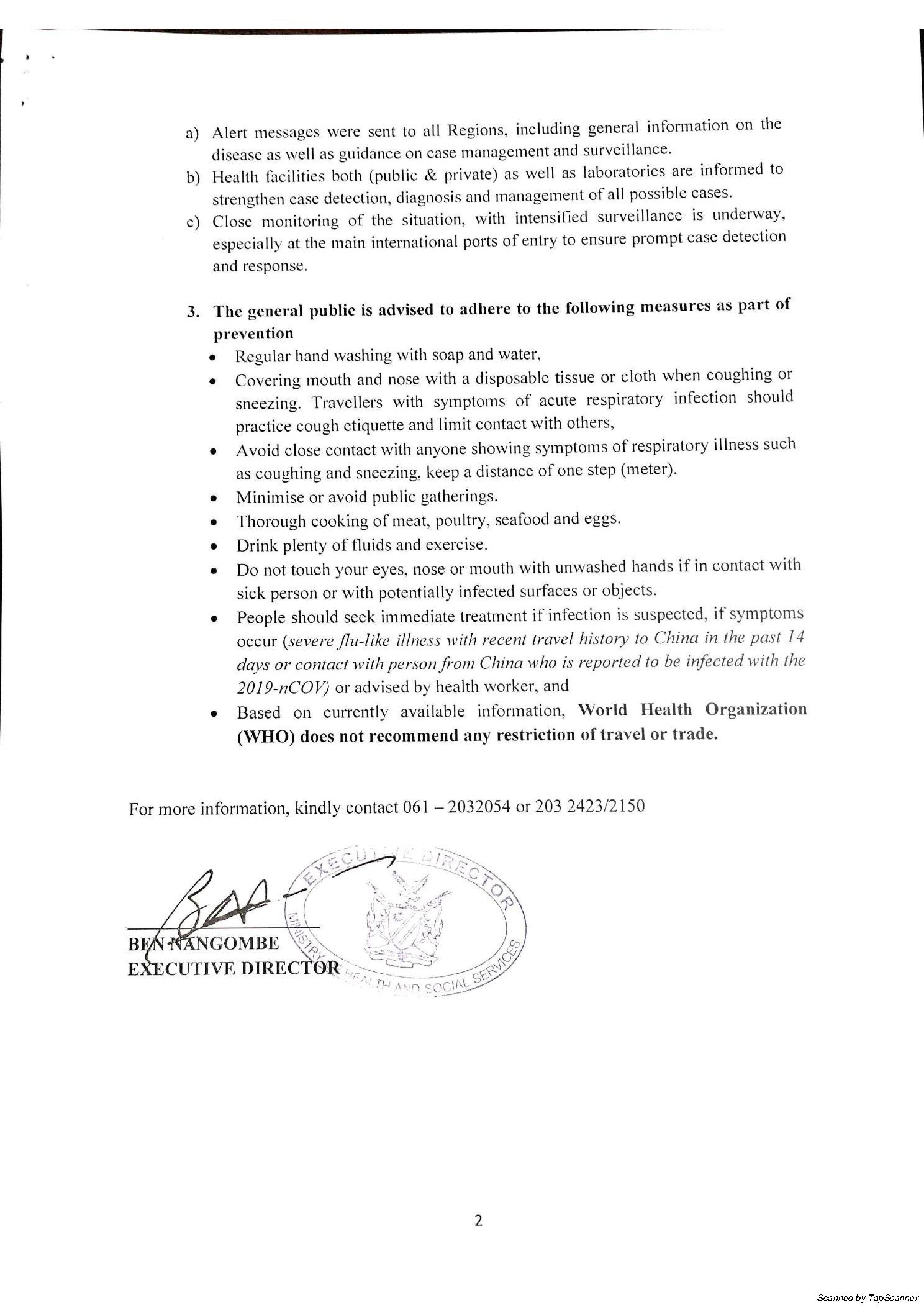 control measures for 2019-nCOV. In response to WHO’s call, Namibia has initiated