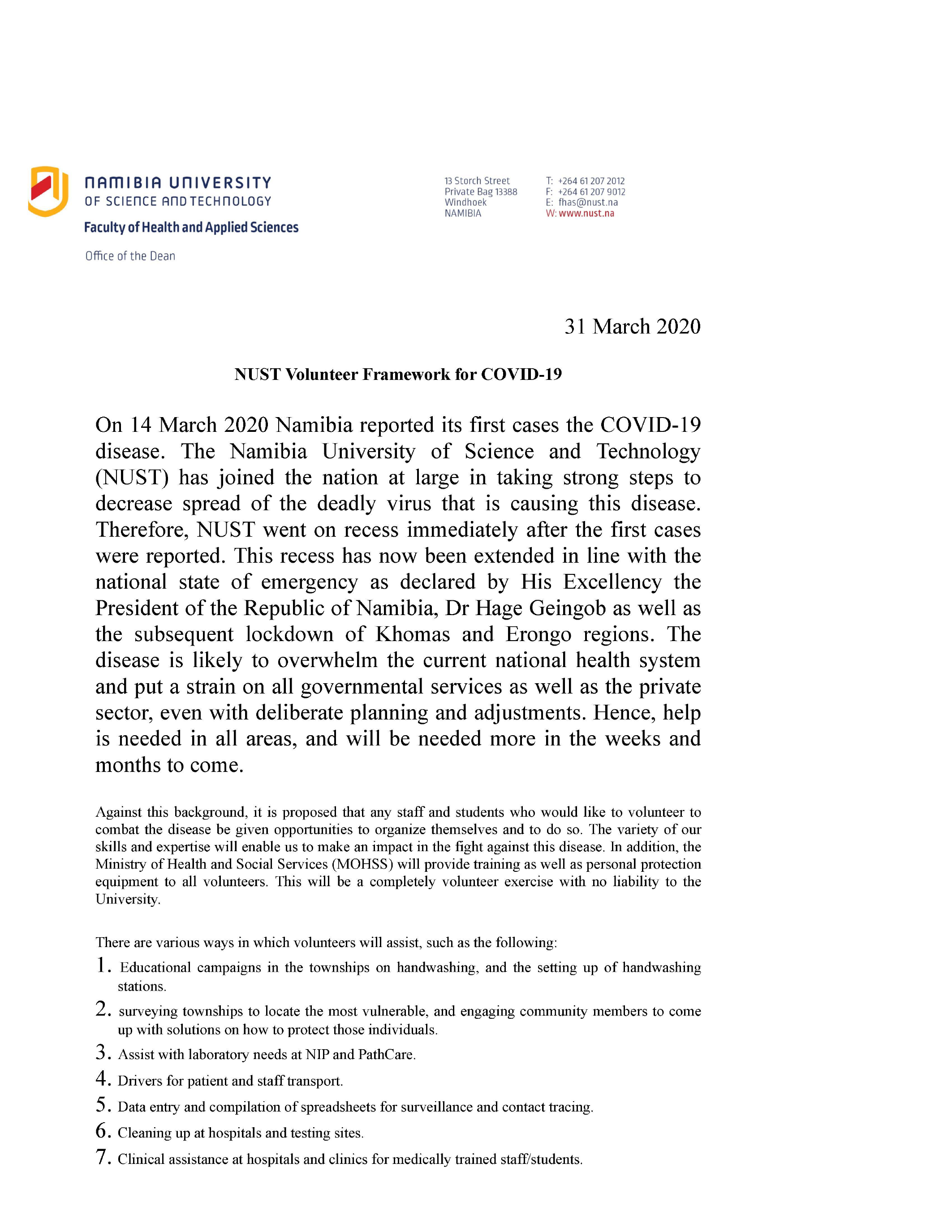 NUST Volunteer Framework for COVID-19 |