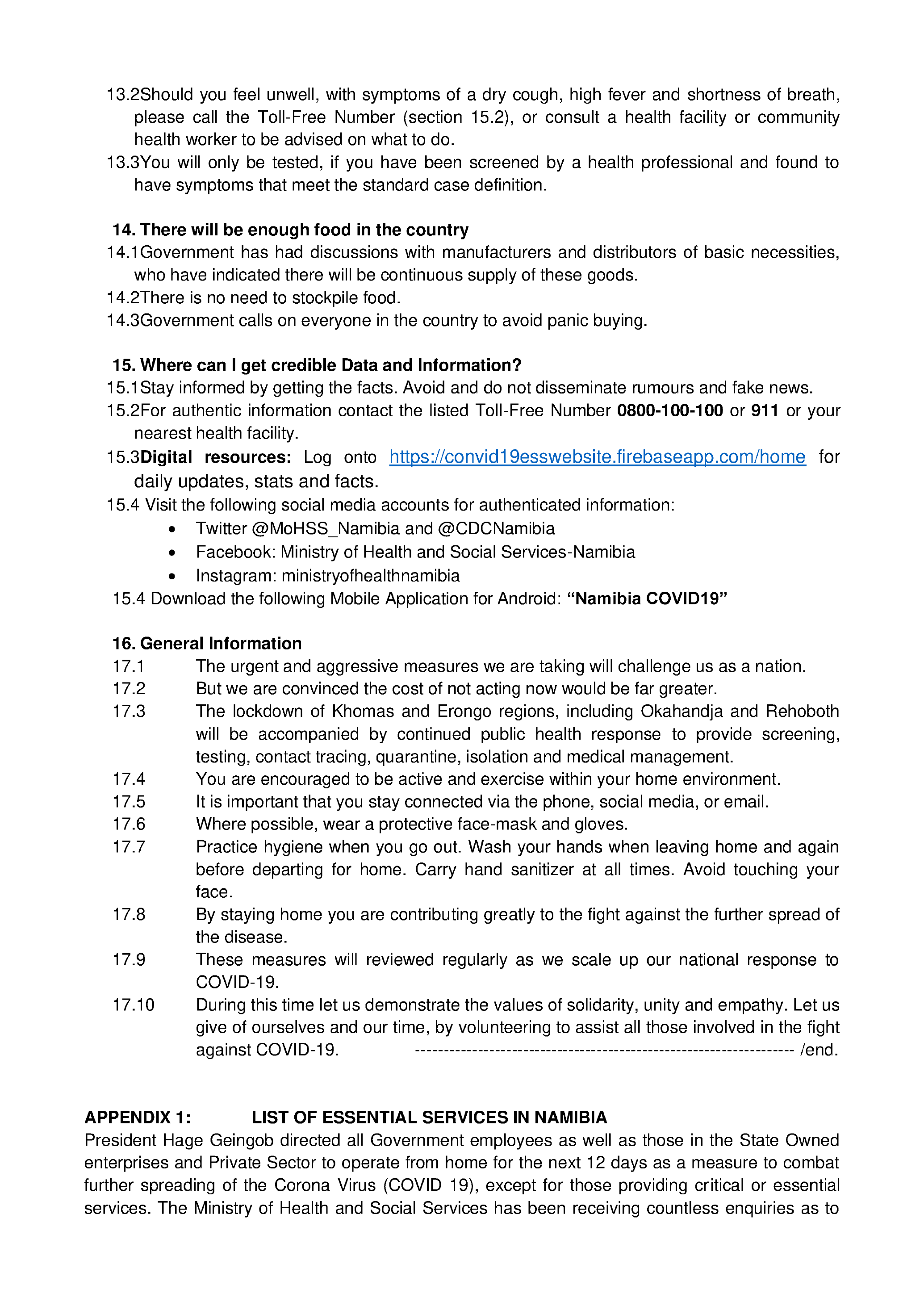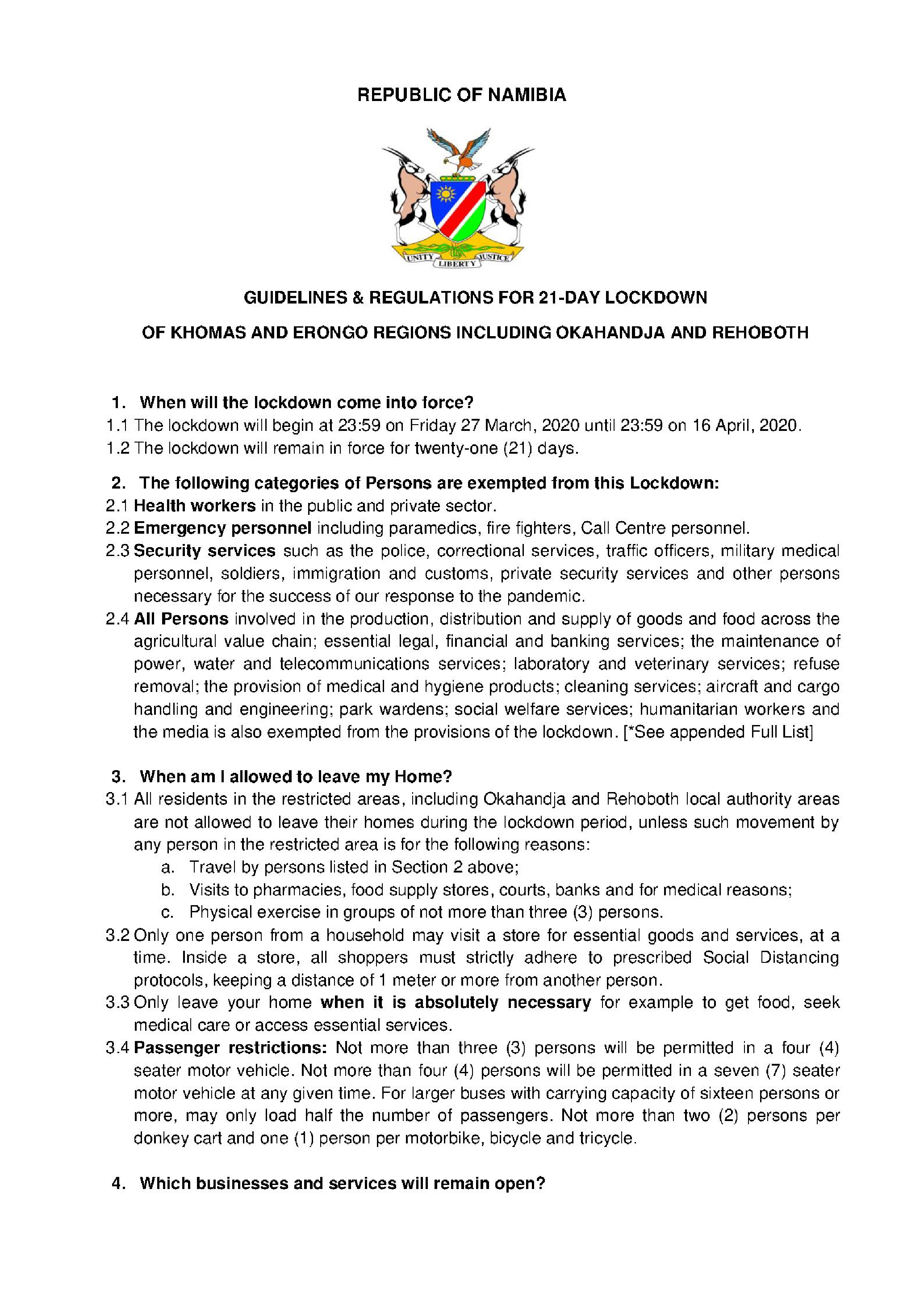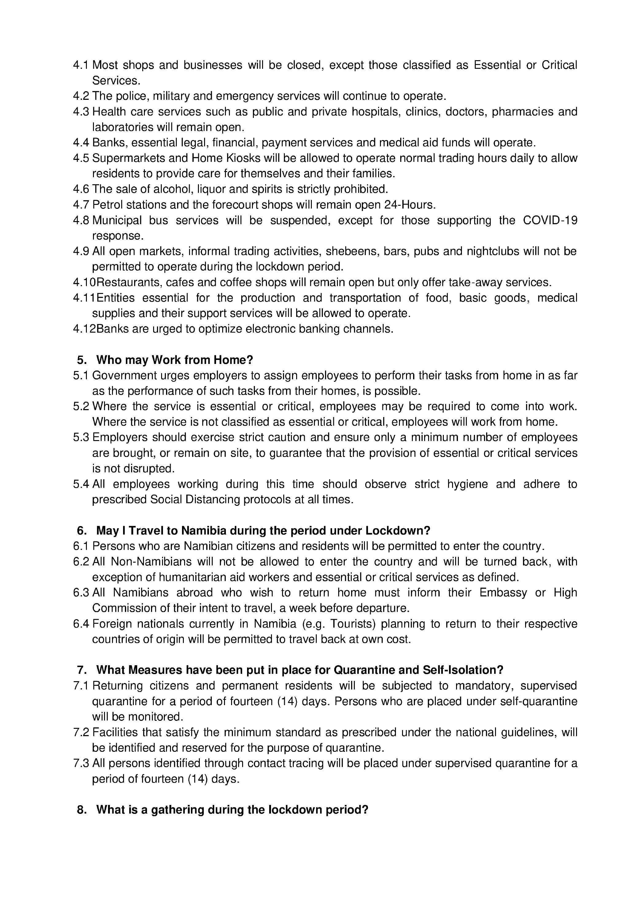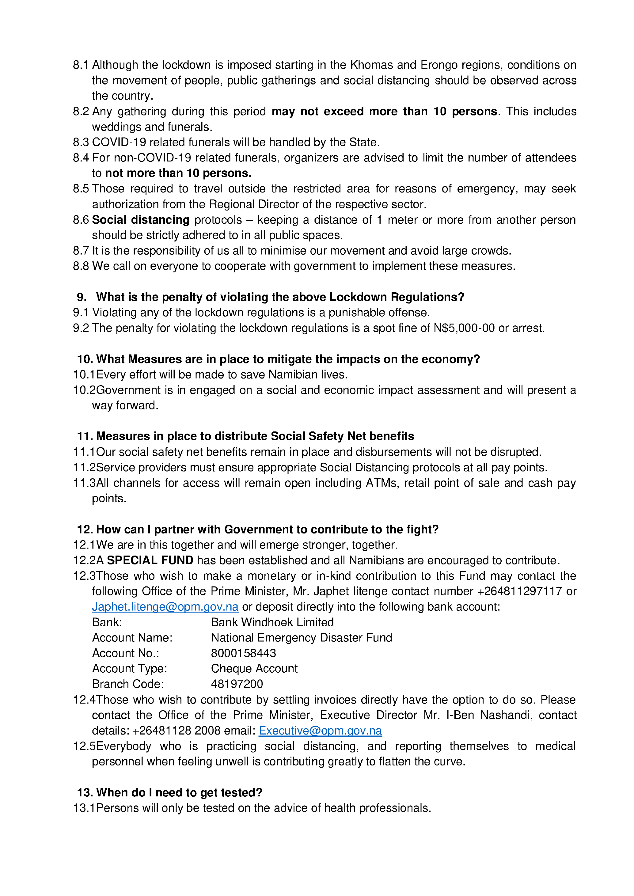 8.1 Although the lockdown is imposed starting in the Knomas and Erongo regions, conditions on