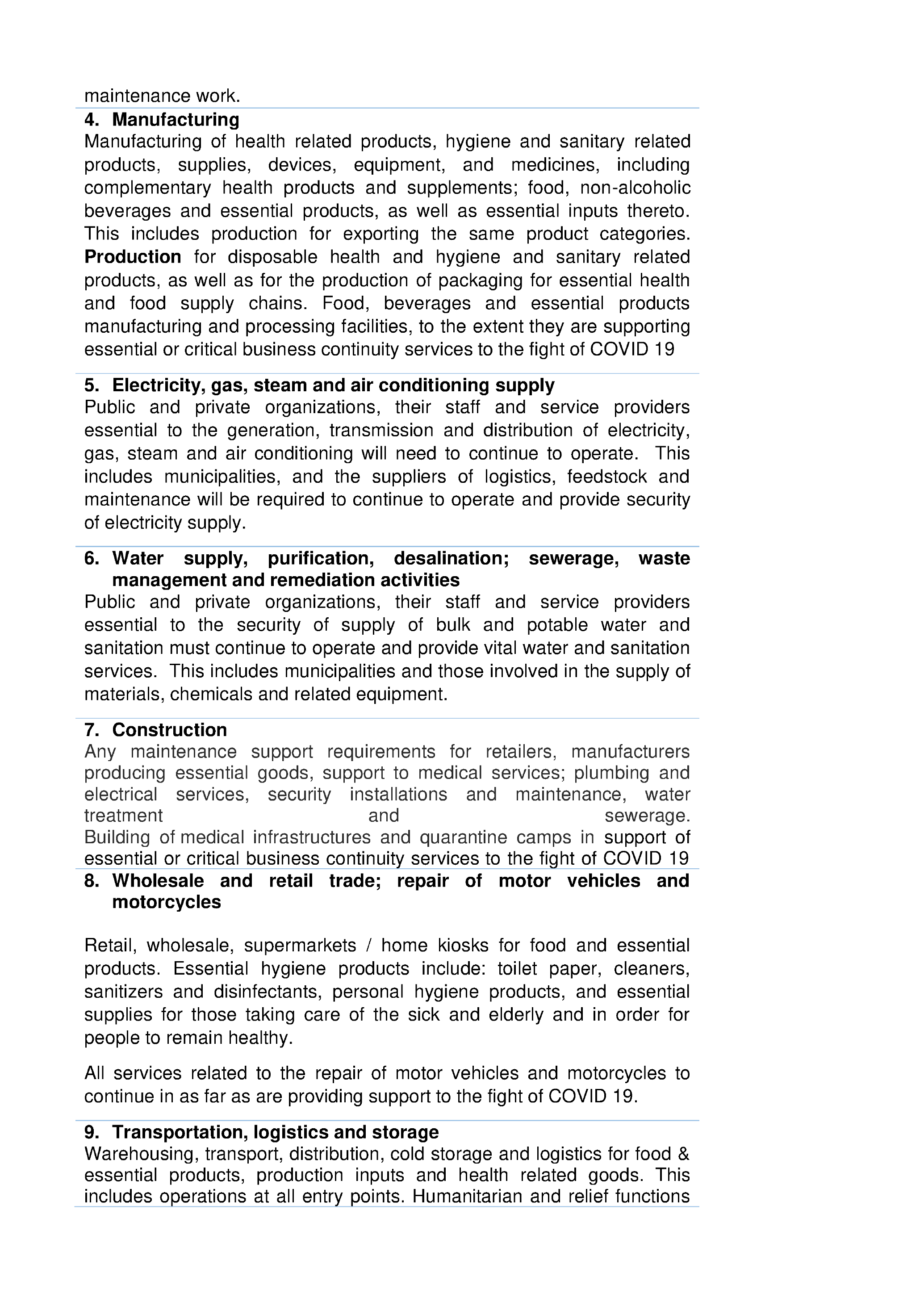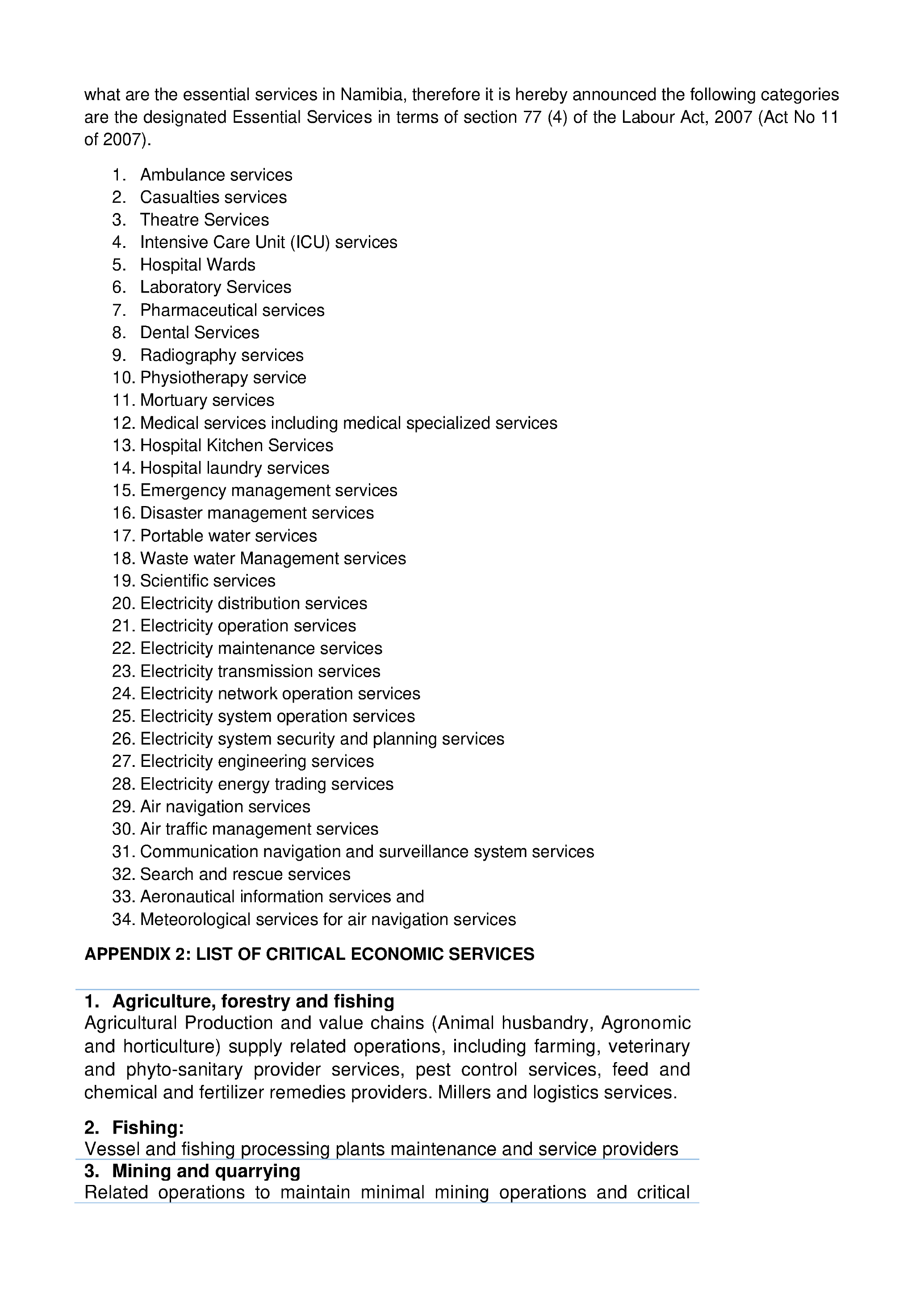 APPENDIX 2: LIST OF CRITICAL ECONOMIC SERVICES