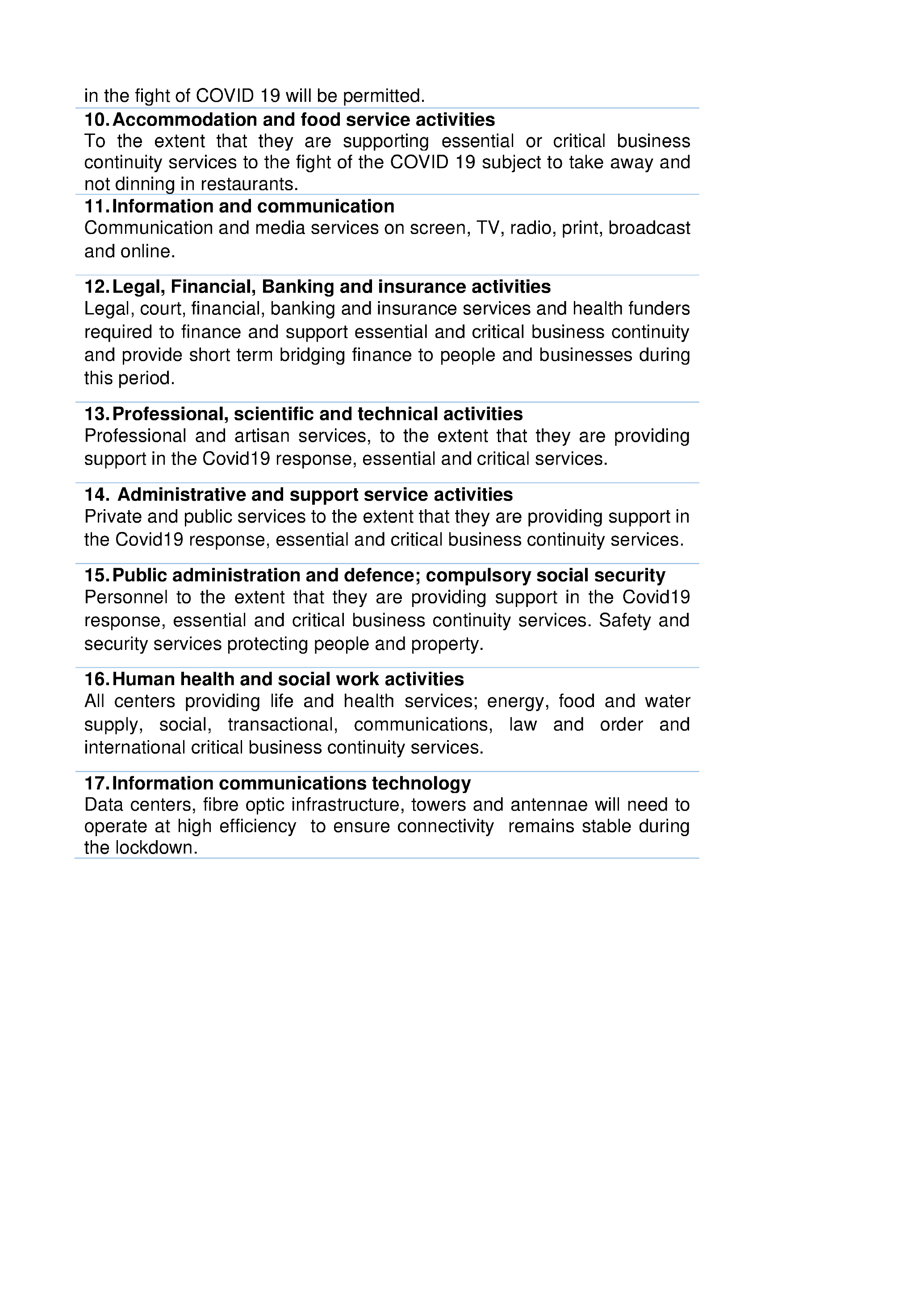 4.4 Banks, essential legal, financial, payment services and medical aid funds will operate.