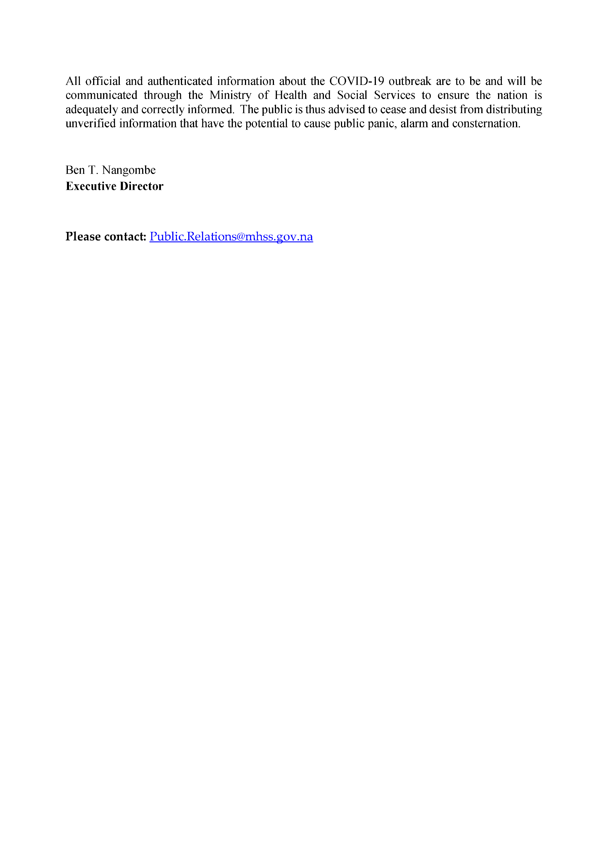 communicated through the Ministry of Health and Social Services to ensure the nation is