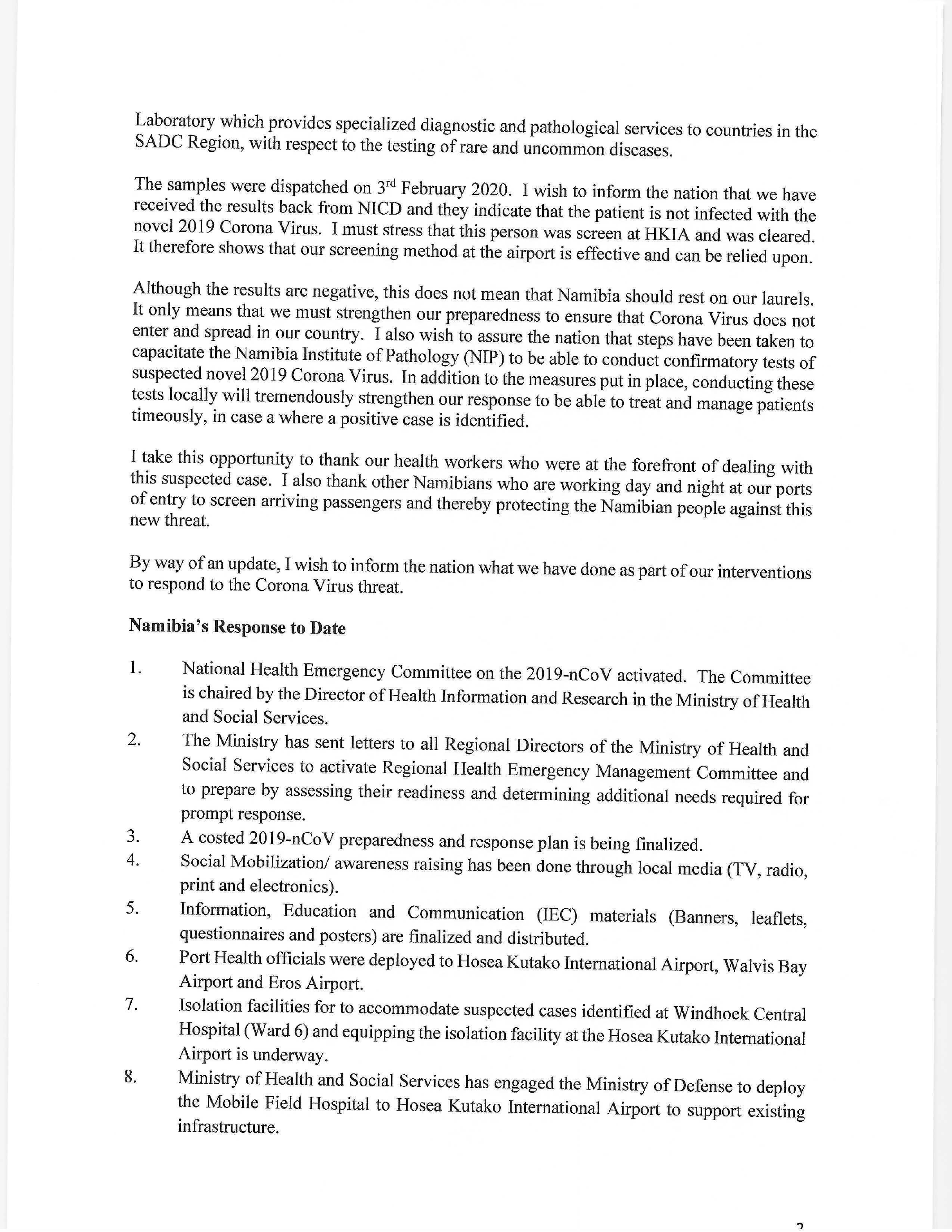 Namibia’s Response to Date