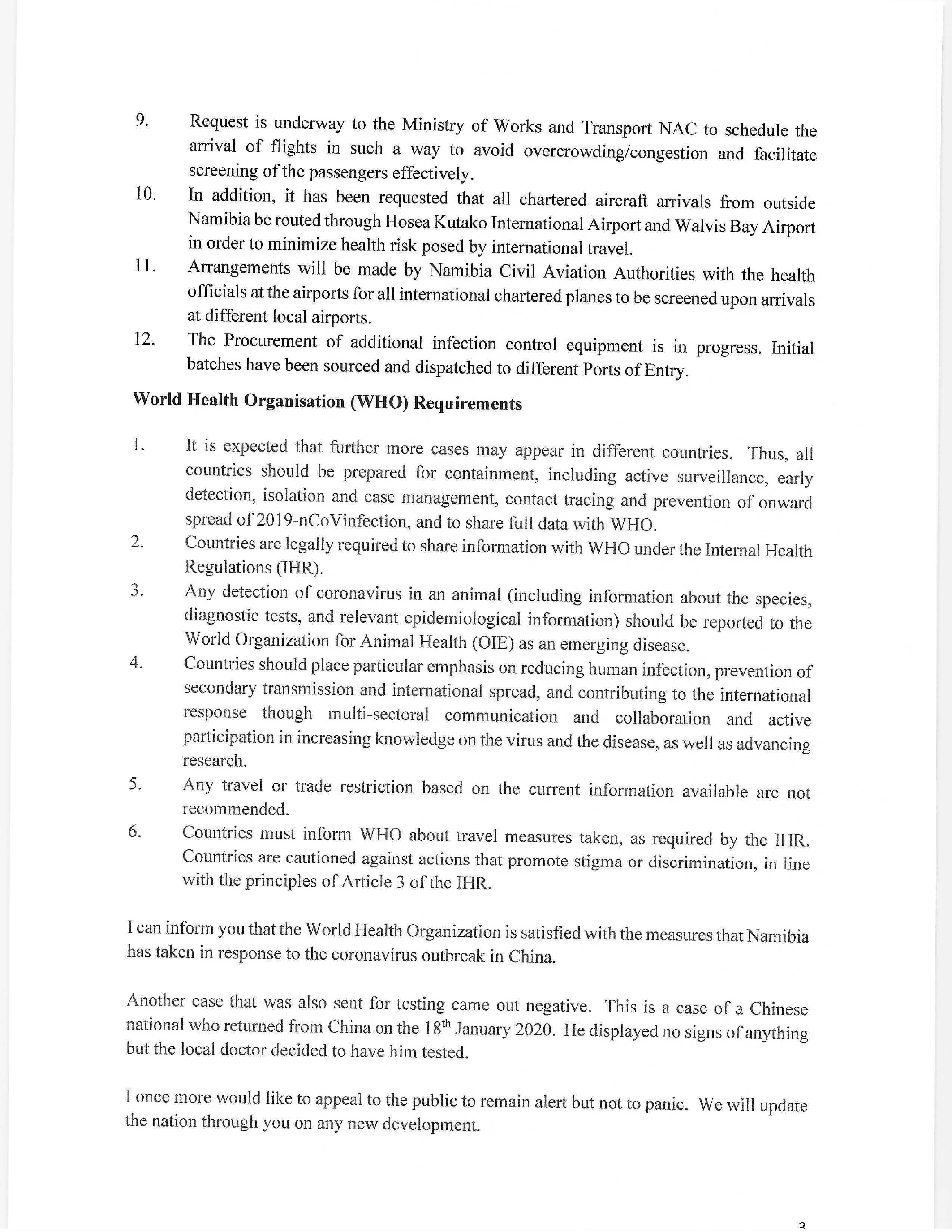 11, Arrangements will be made by Namibia Civil Aviation Authorities with the health