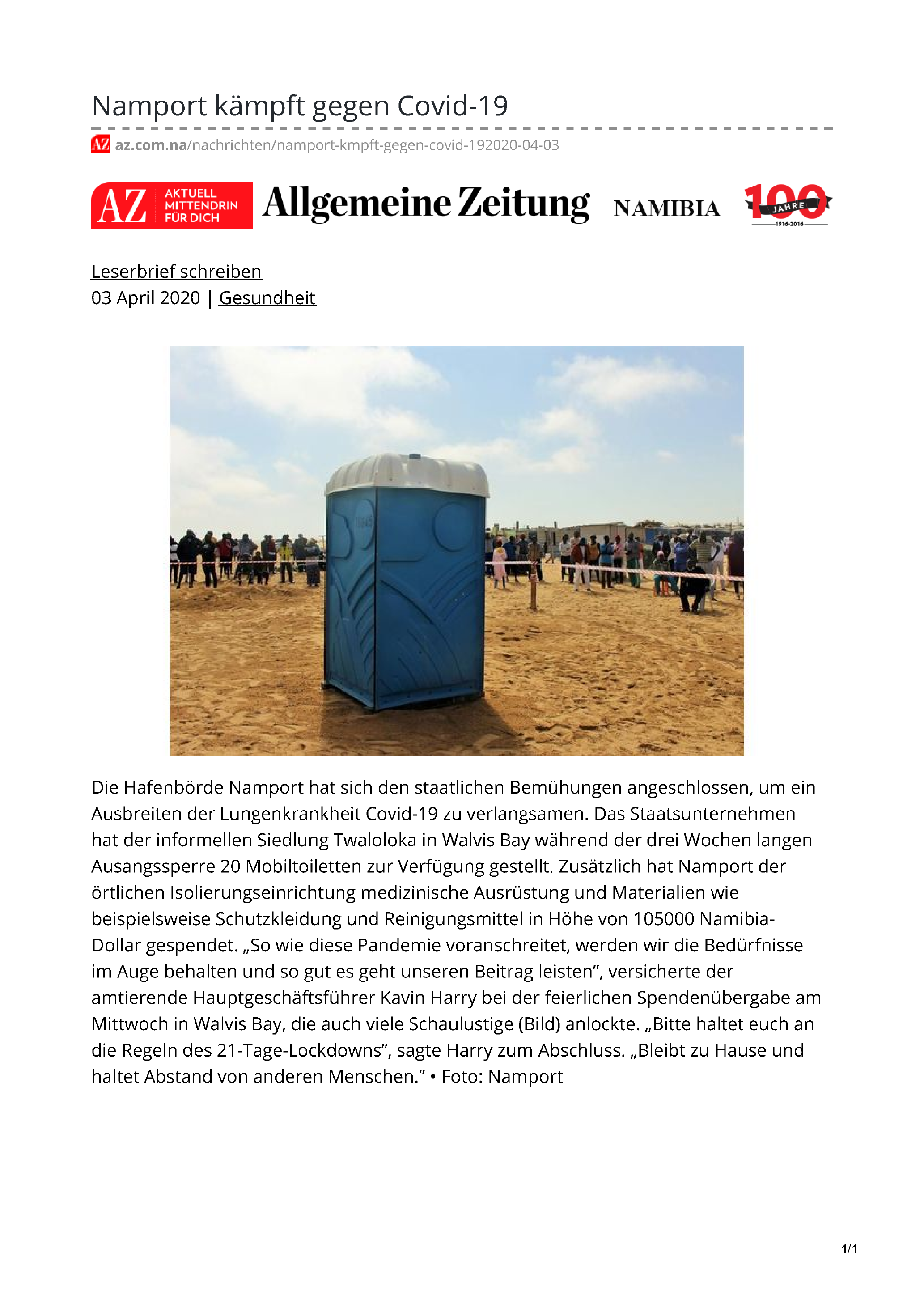 az.com.na-Namport kaempft gegen Covid-19 |