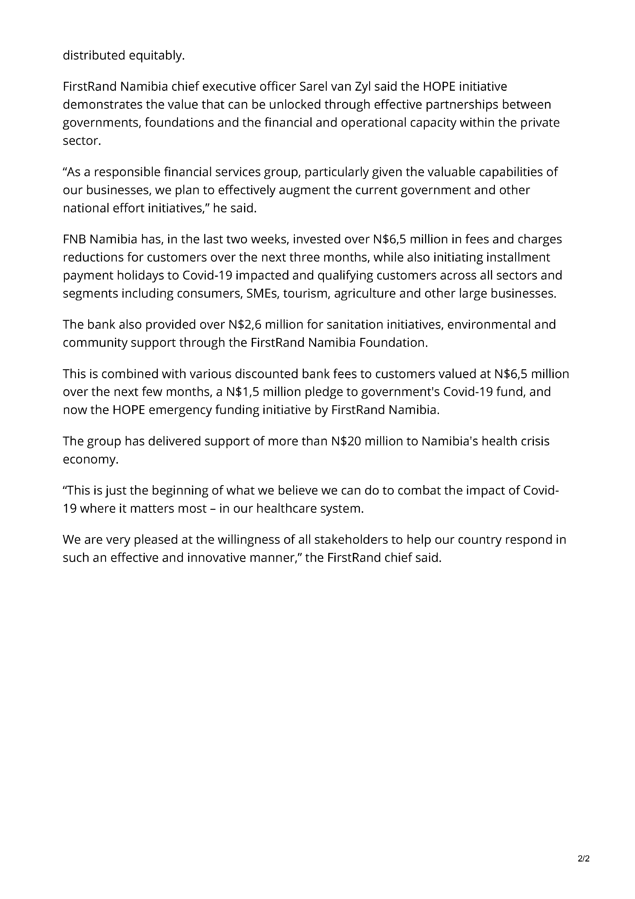 now the HOPE emergency funding initiative by FirstRand Namibia.
