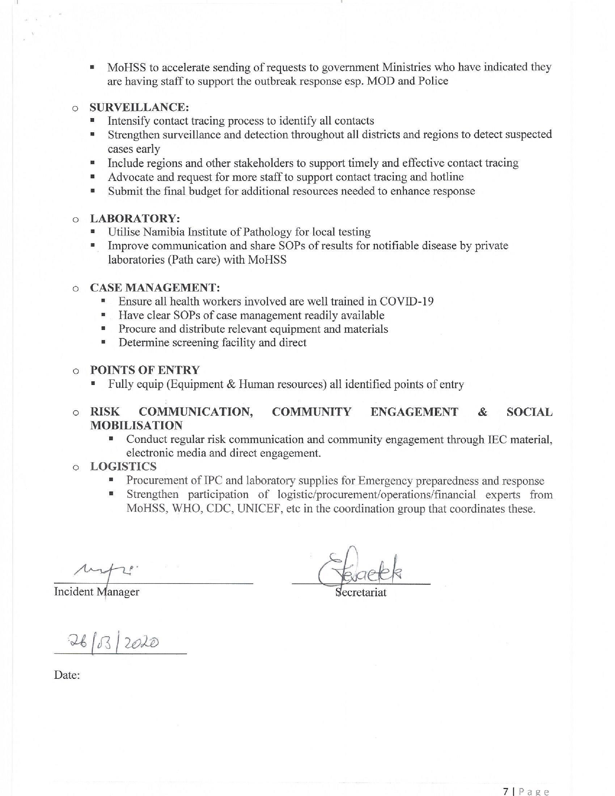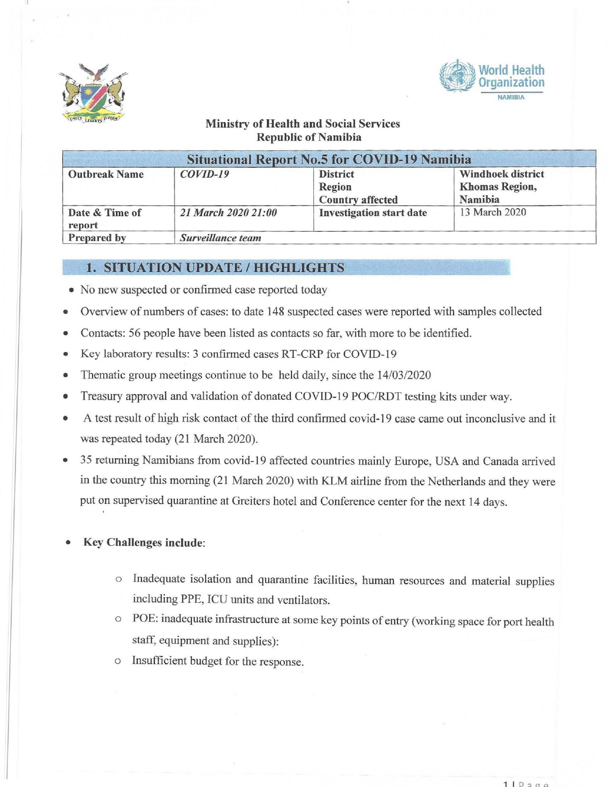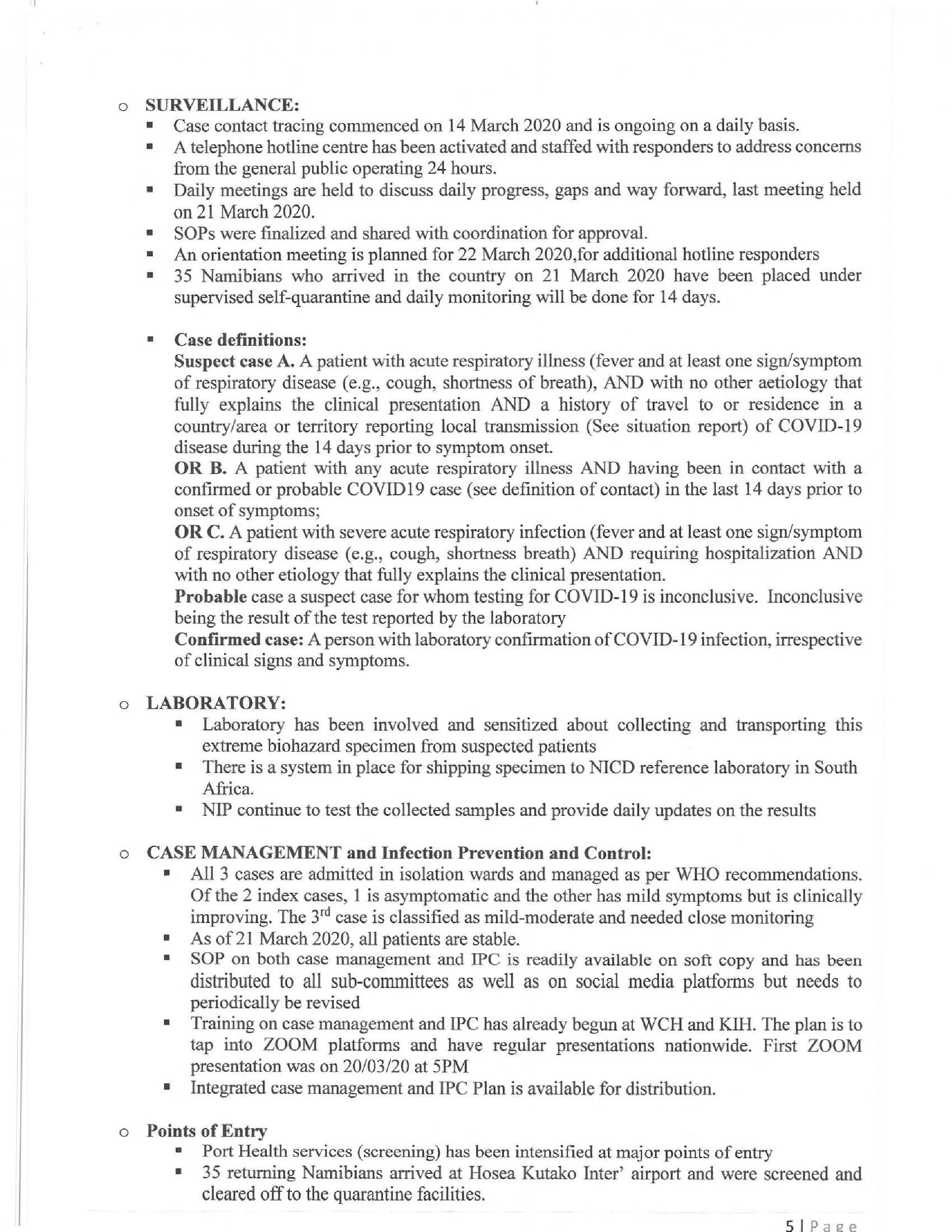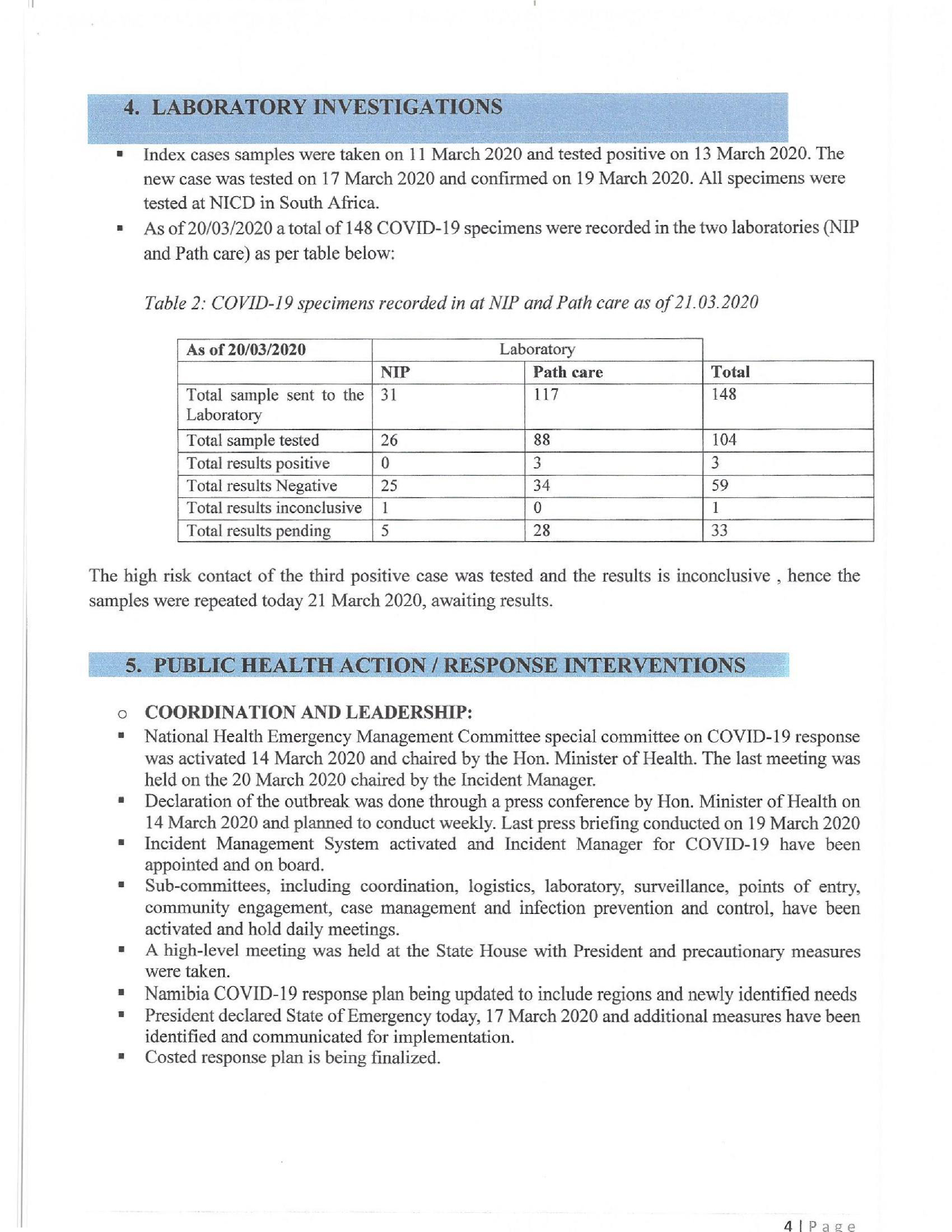 4'" March 2020 and arrived in Namibia on 13 March 2020 by Air from Cape Town. The