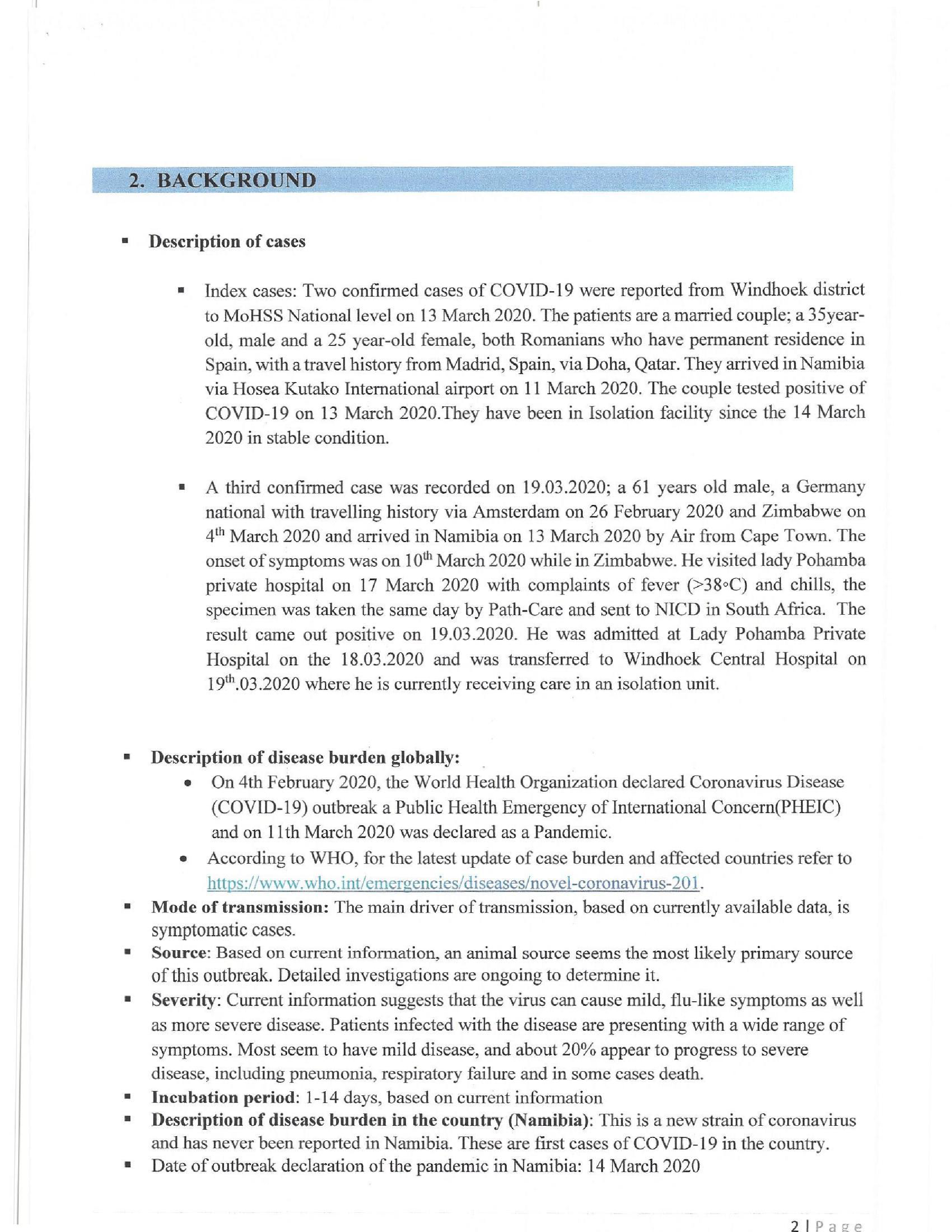 and has never been reported in Namibia. These are first cases of COVID-19 in the country.