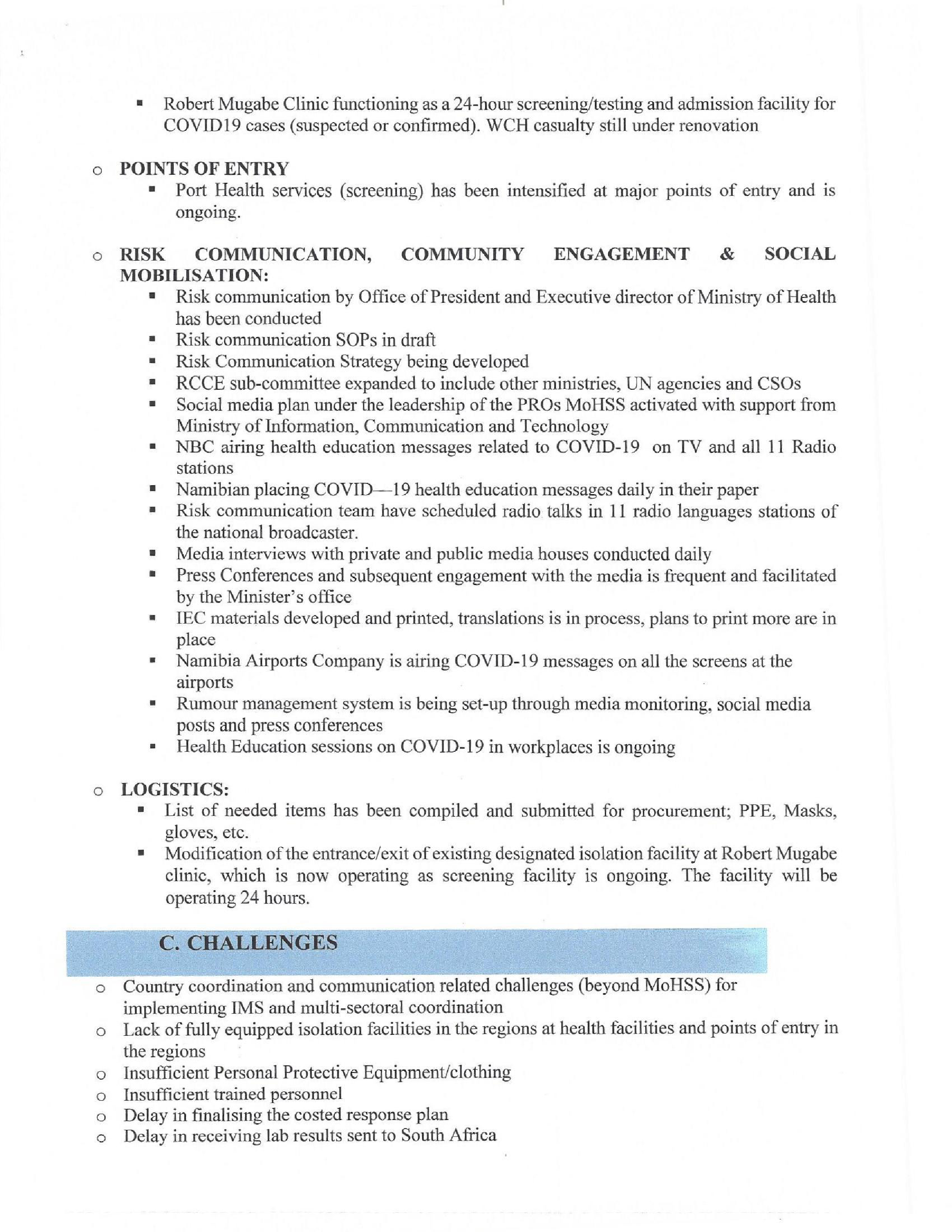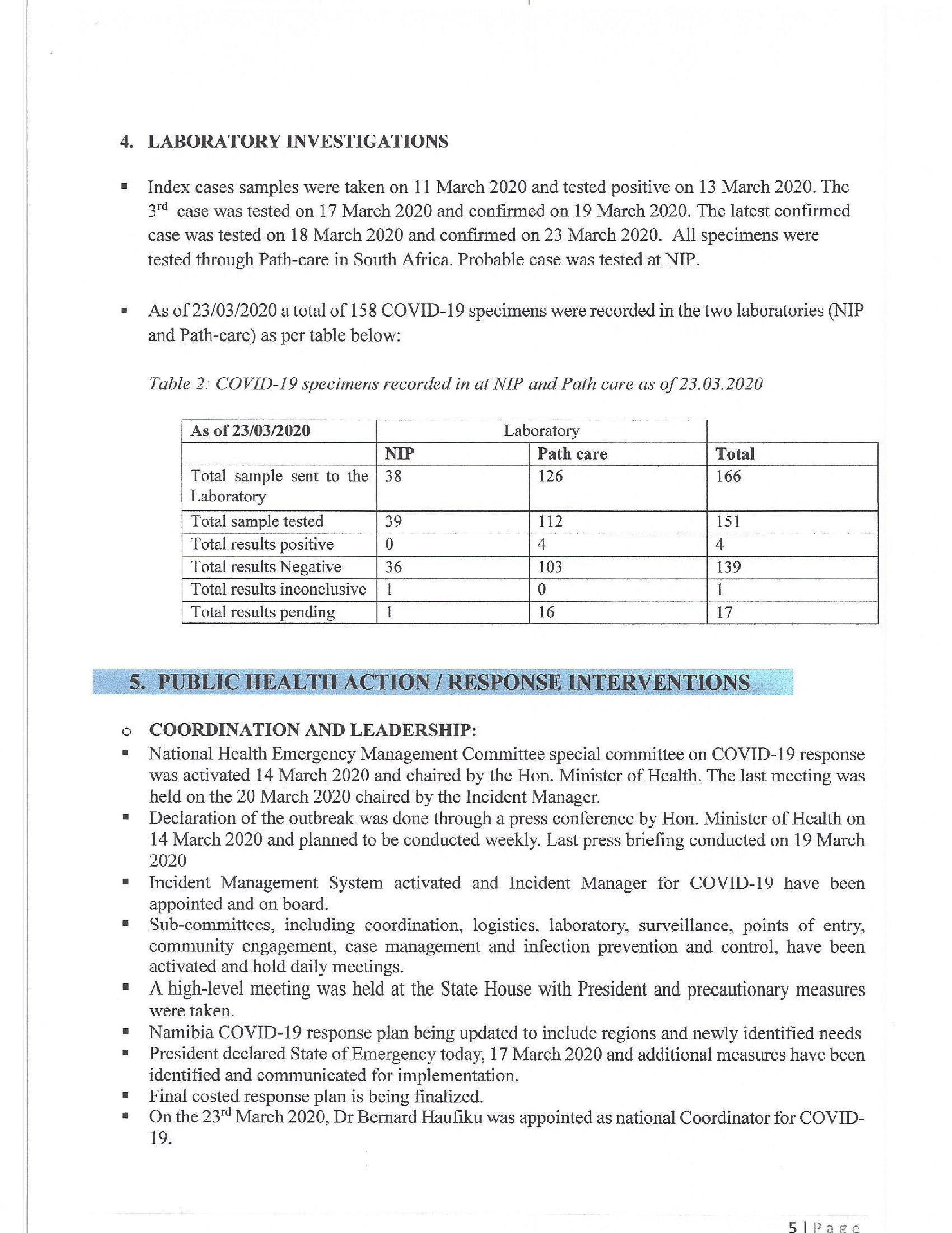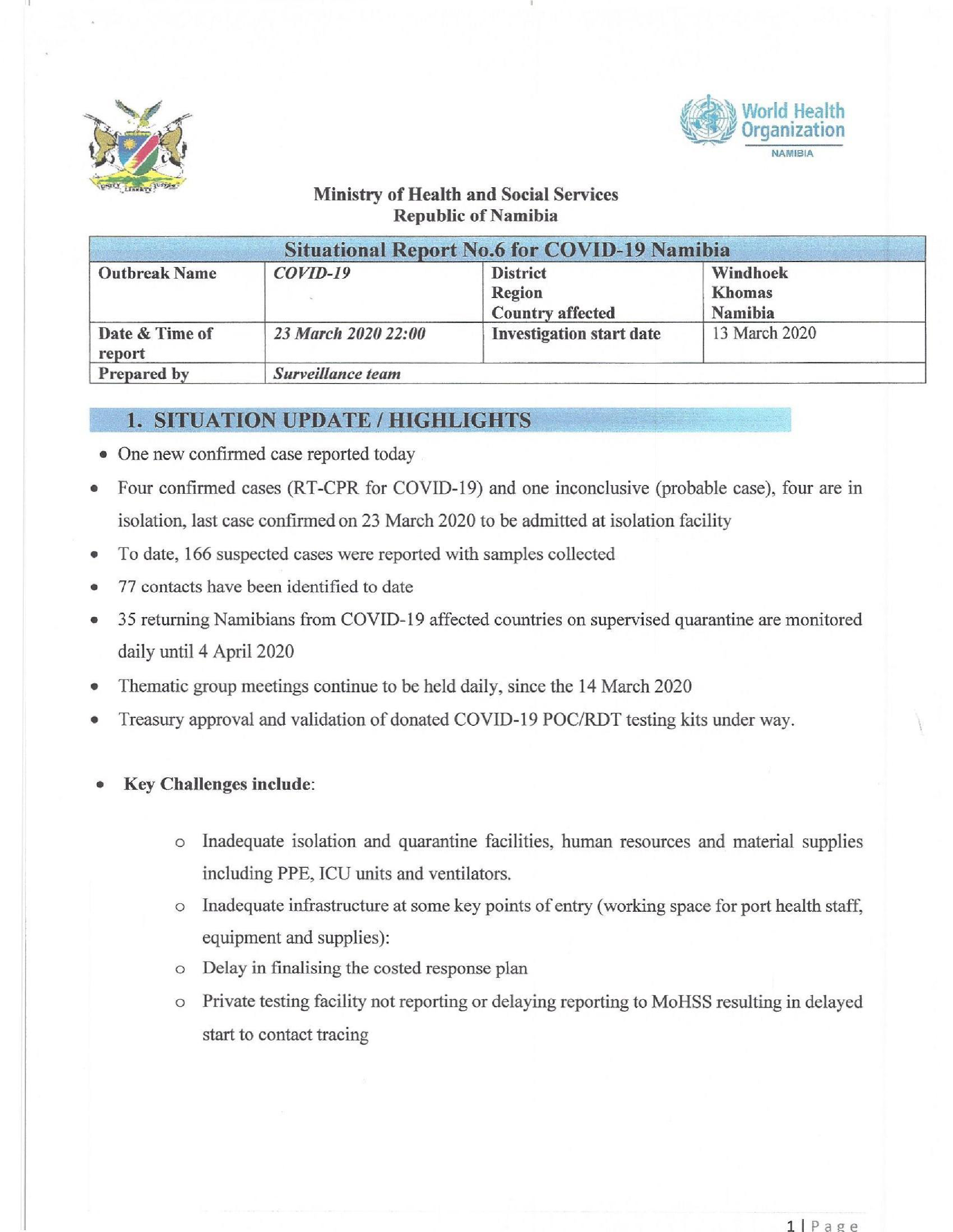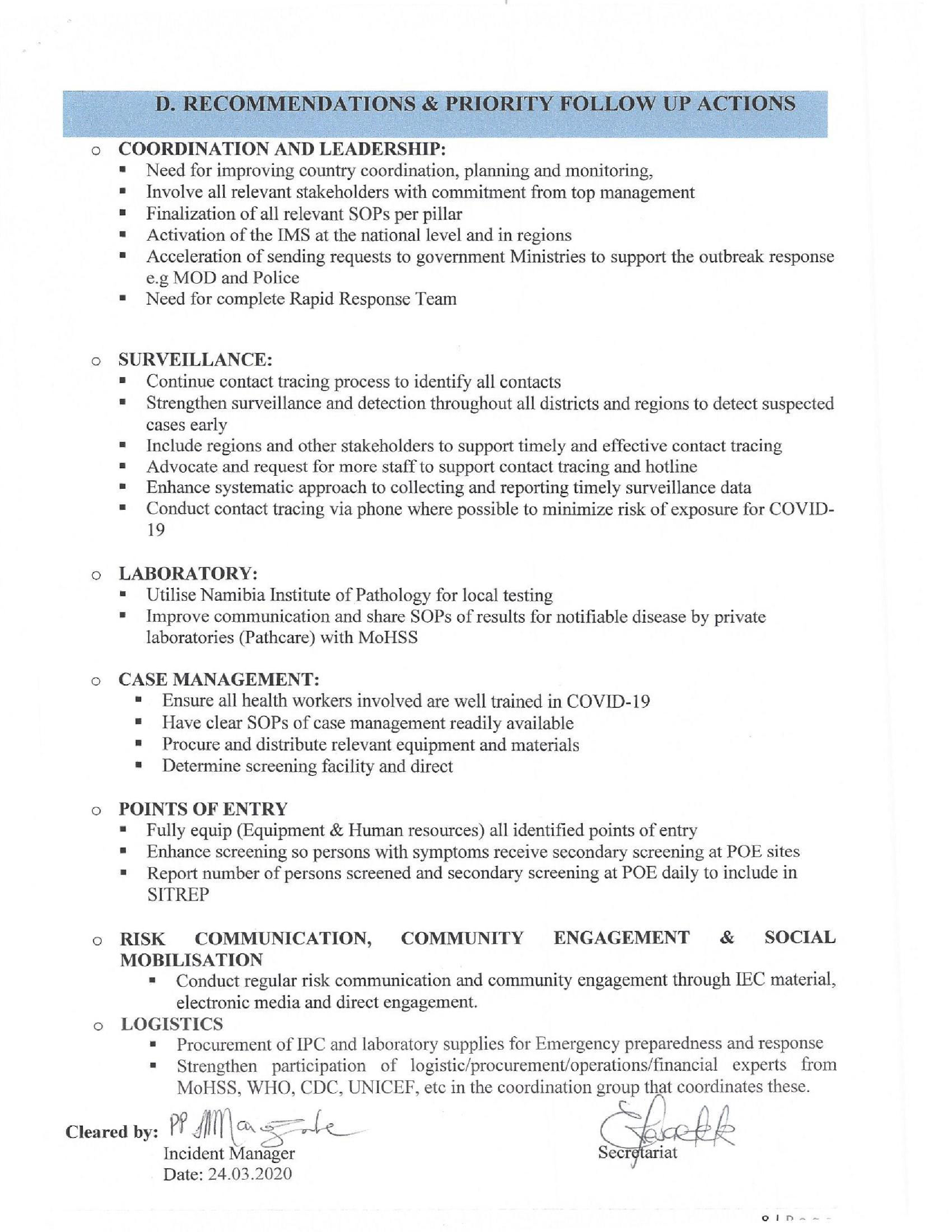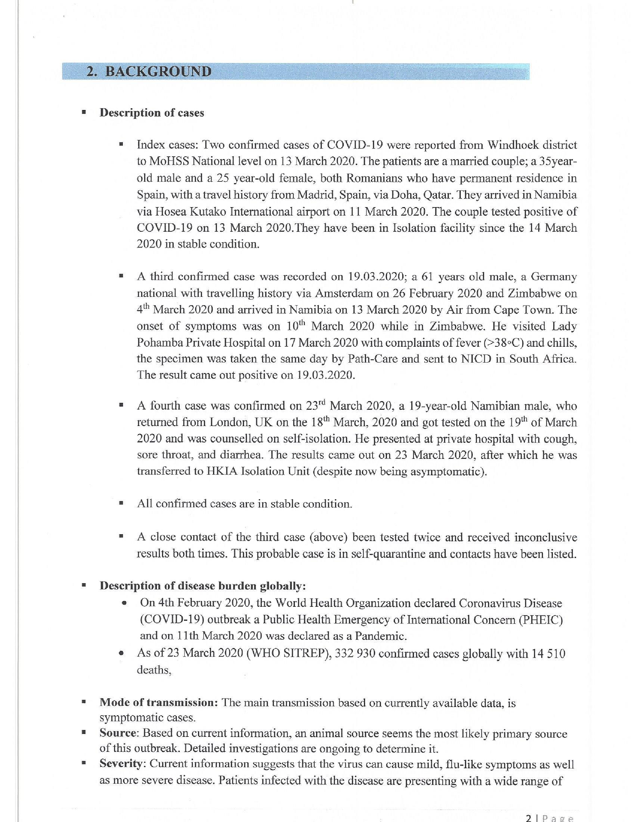 35 Namibians who arrived on 21March 2020 are in supervised quarantine and being