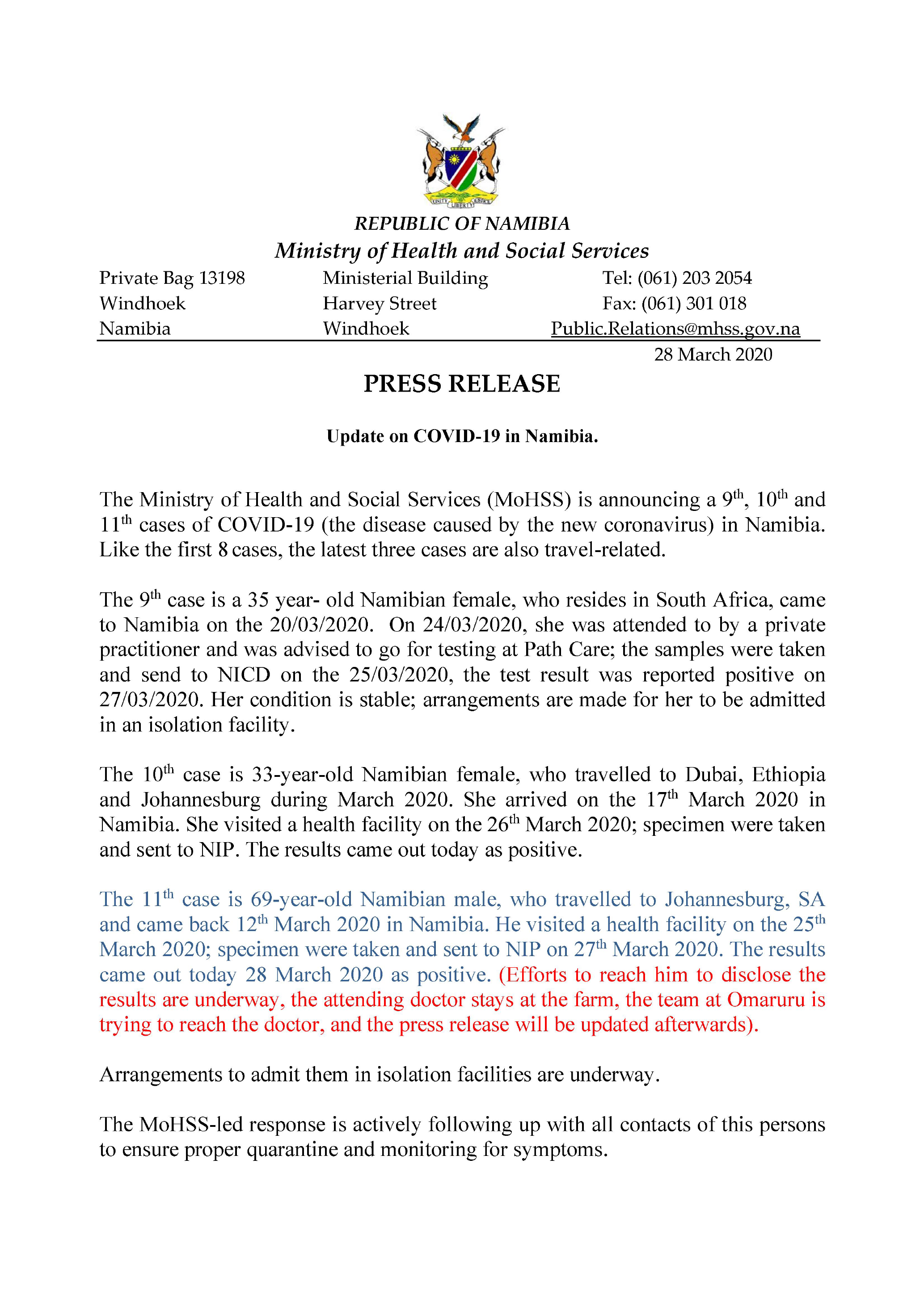 Press Release Update on COVID19 in Namibia 28 March 2020 |