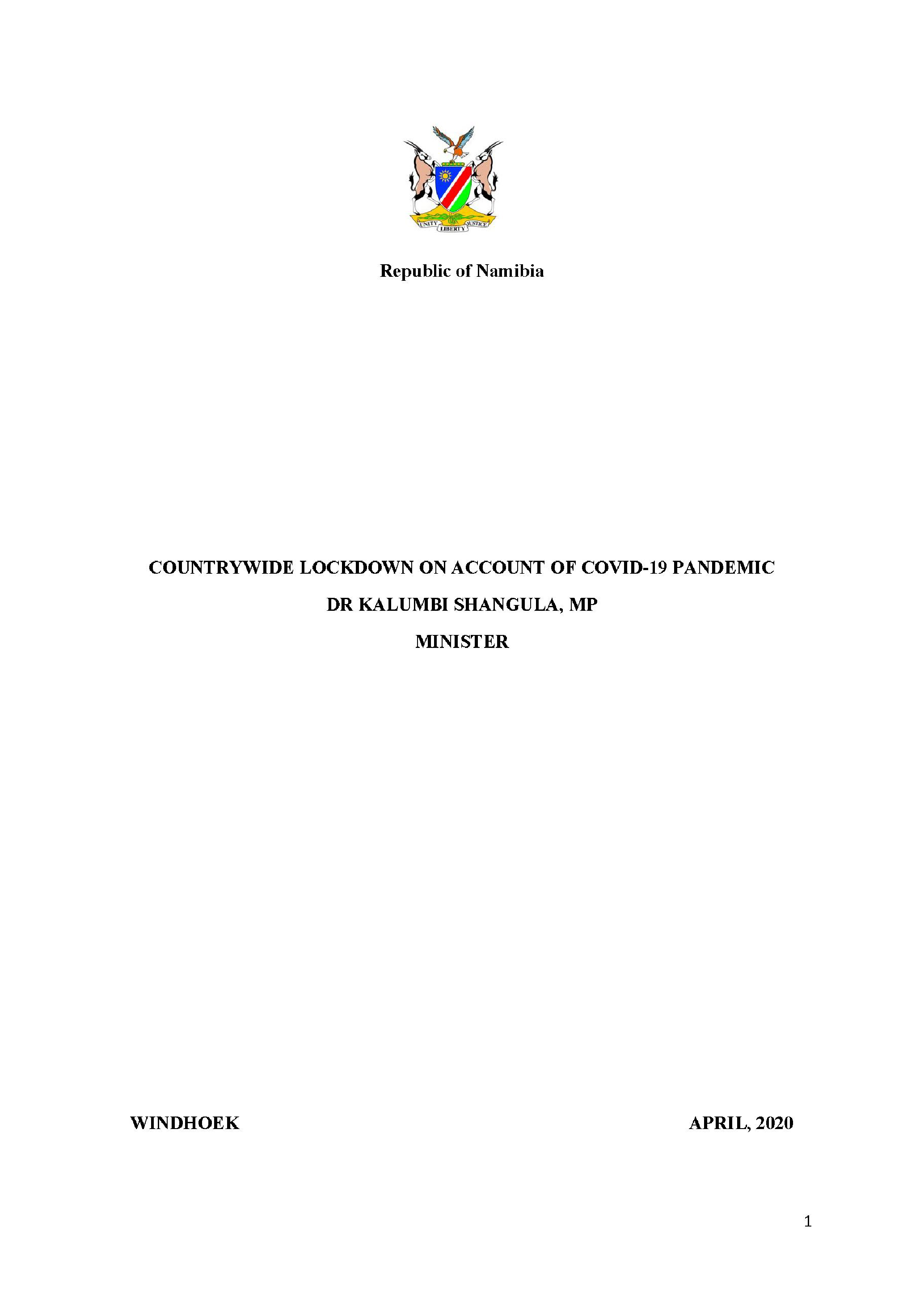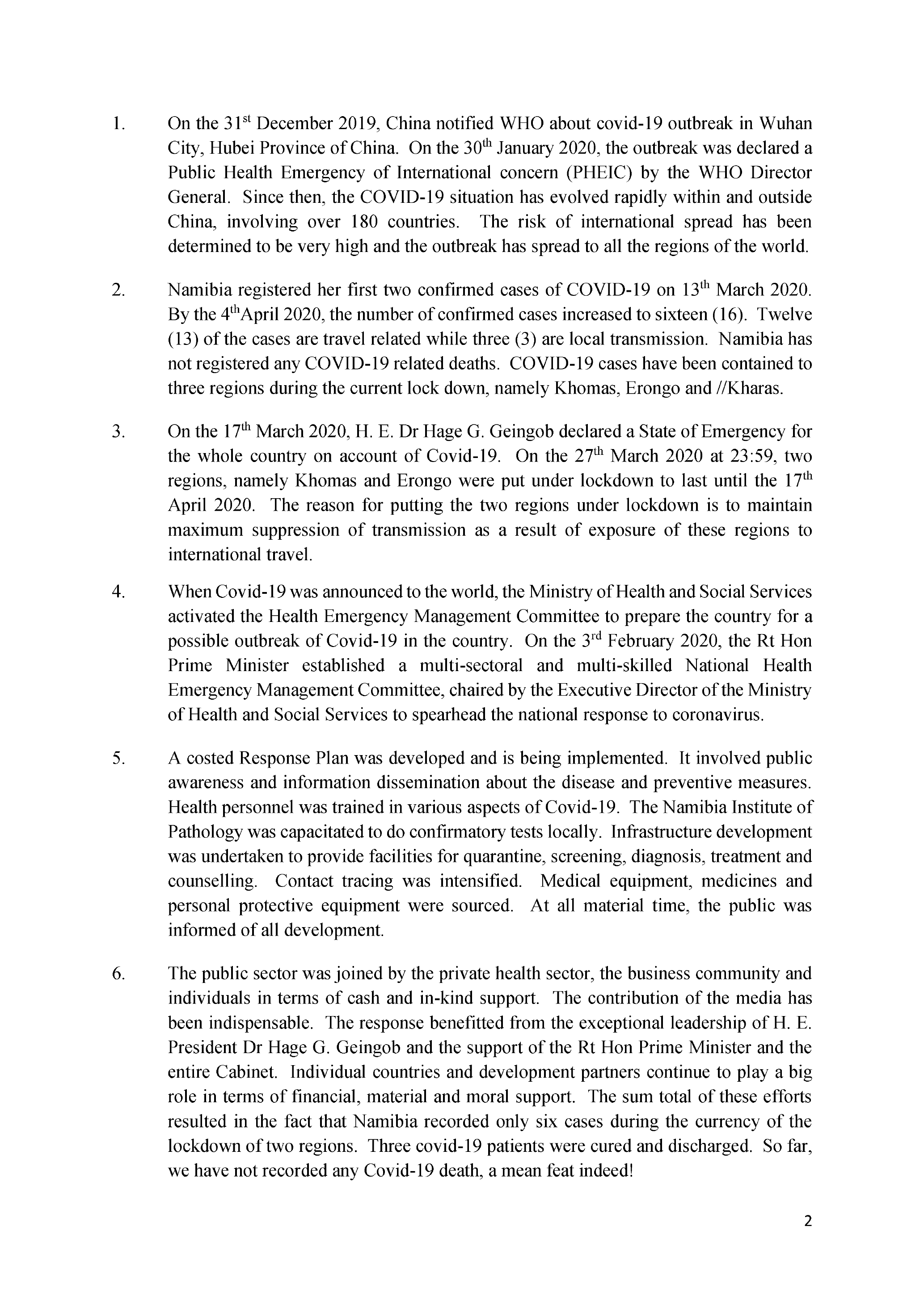 On the 17" March 2020, H. E. Dr Hage G. Geingob declared a State of Emergency for
