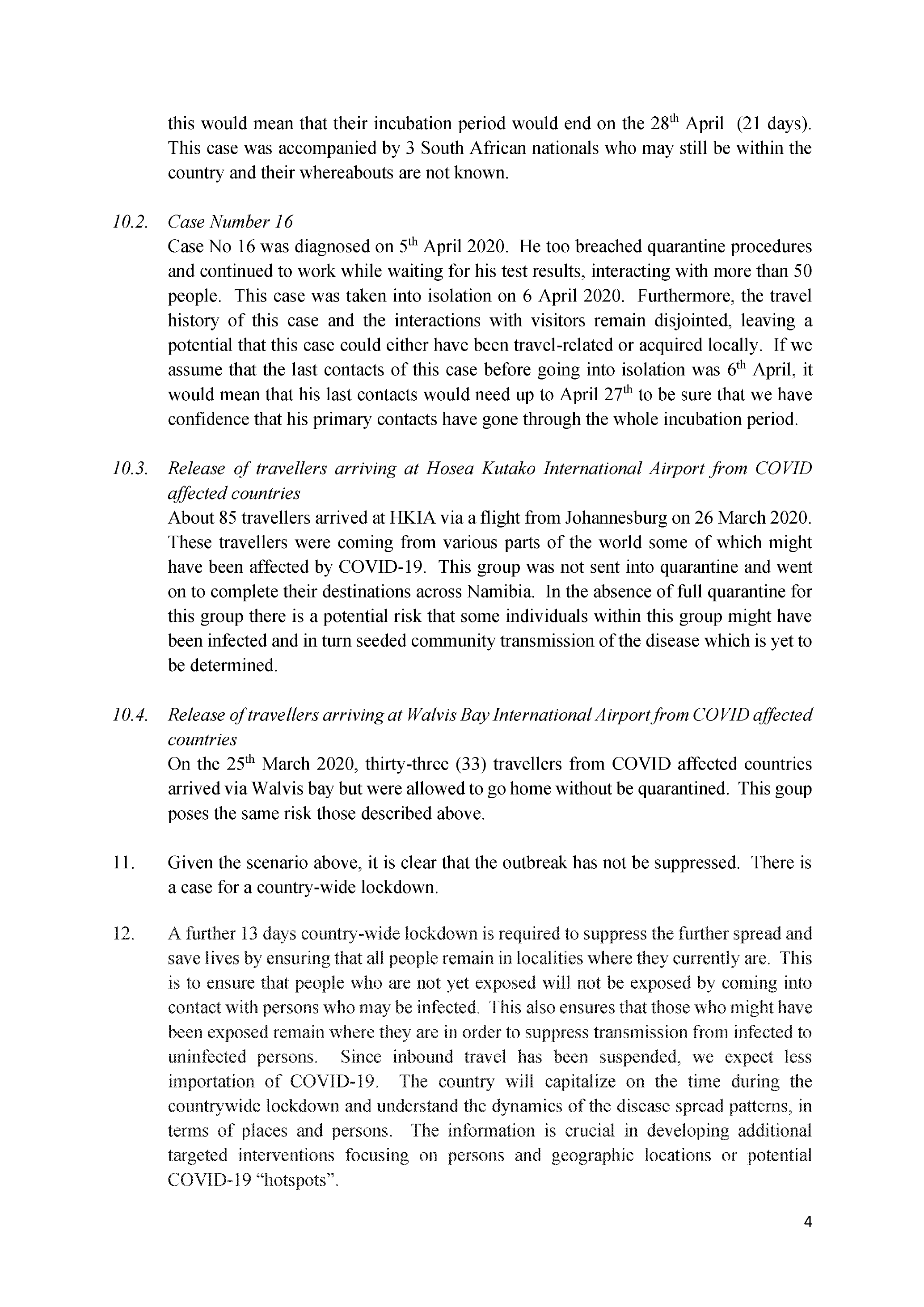 10.4. Release of travellers arriving at Walvis Bay International Airport from COVID affected