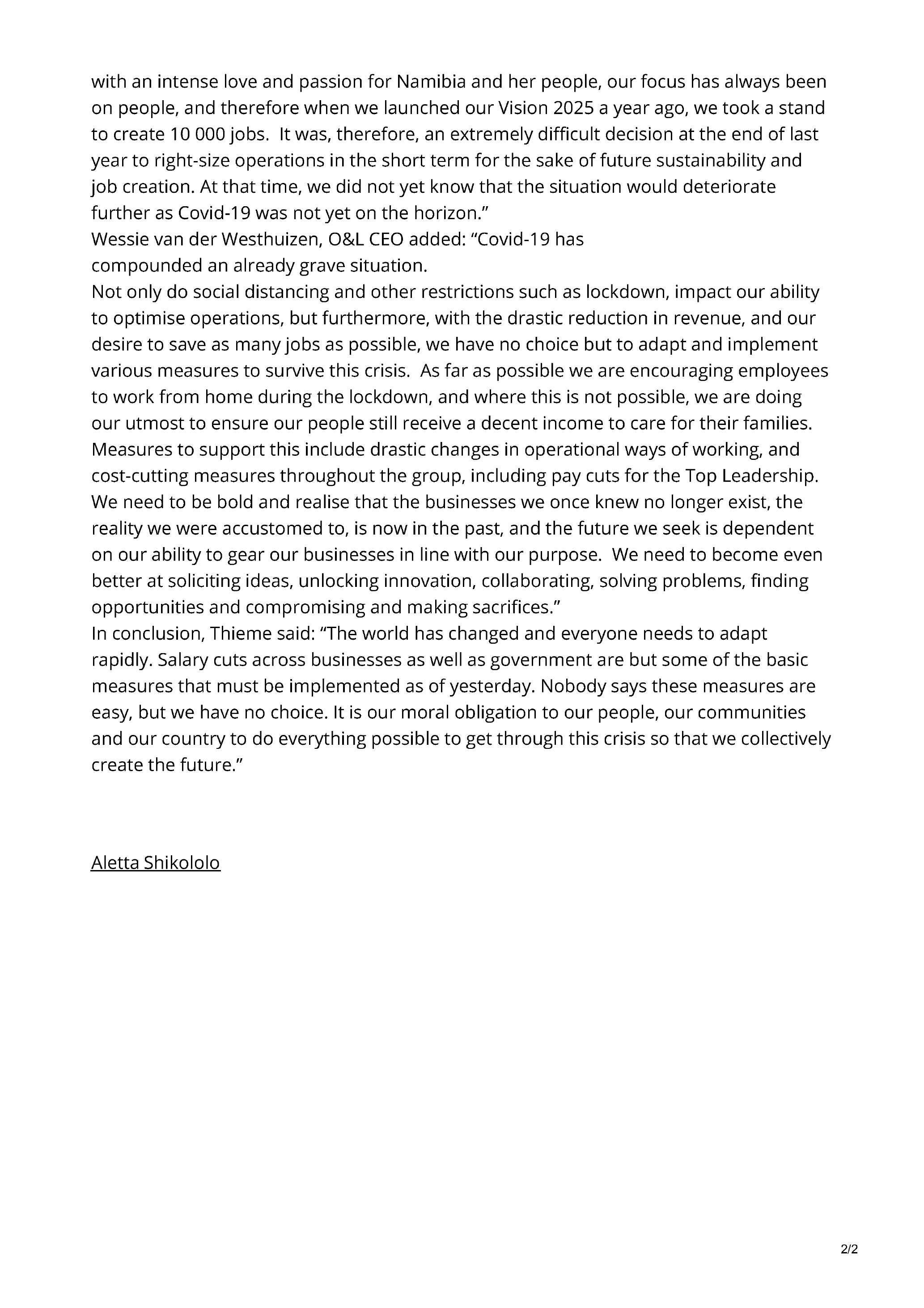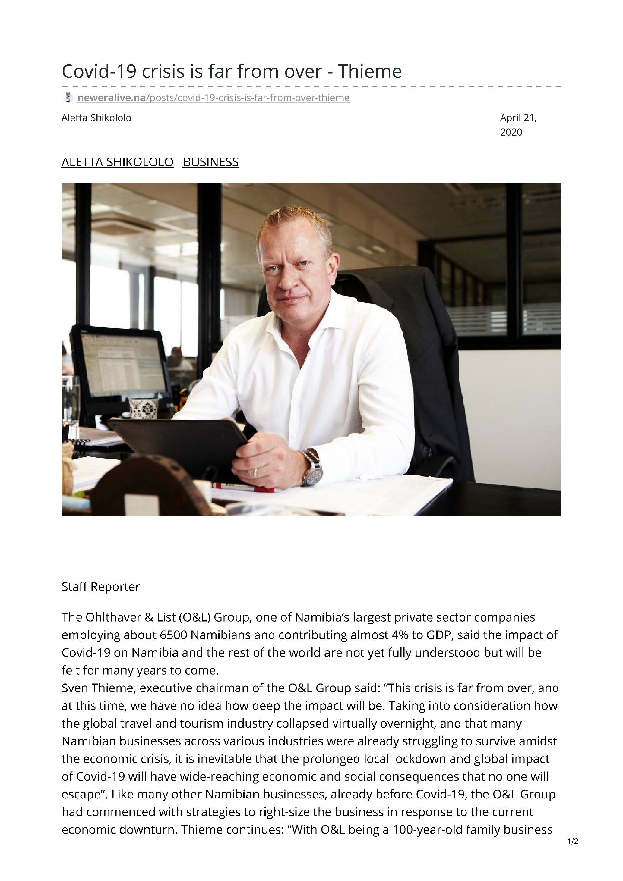 escape”. Like many other Namibian businesses, already before Covid-19, the O&L Group