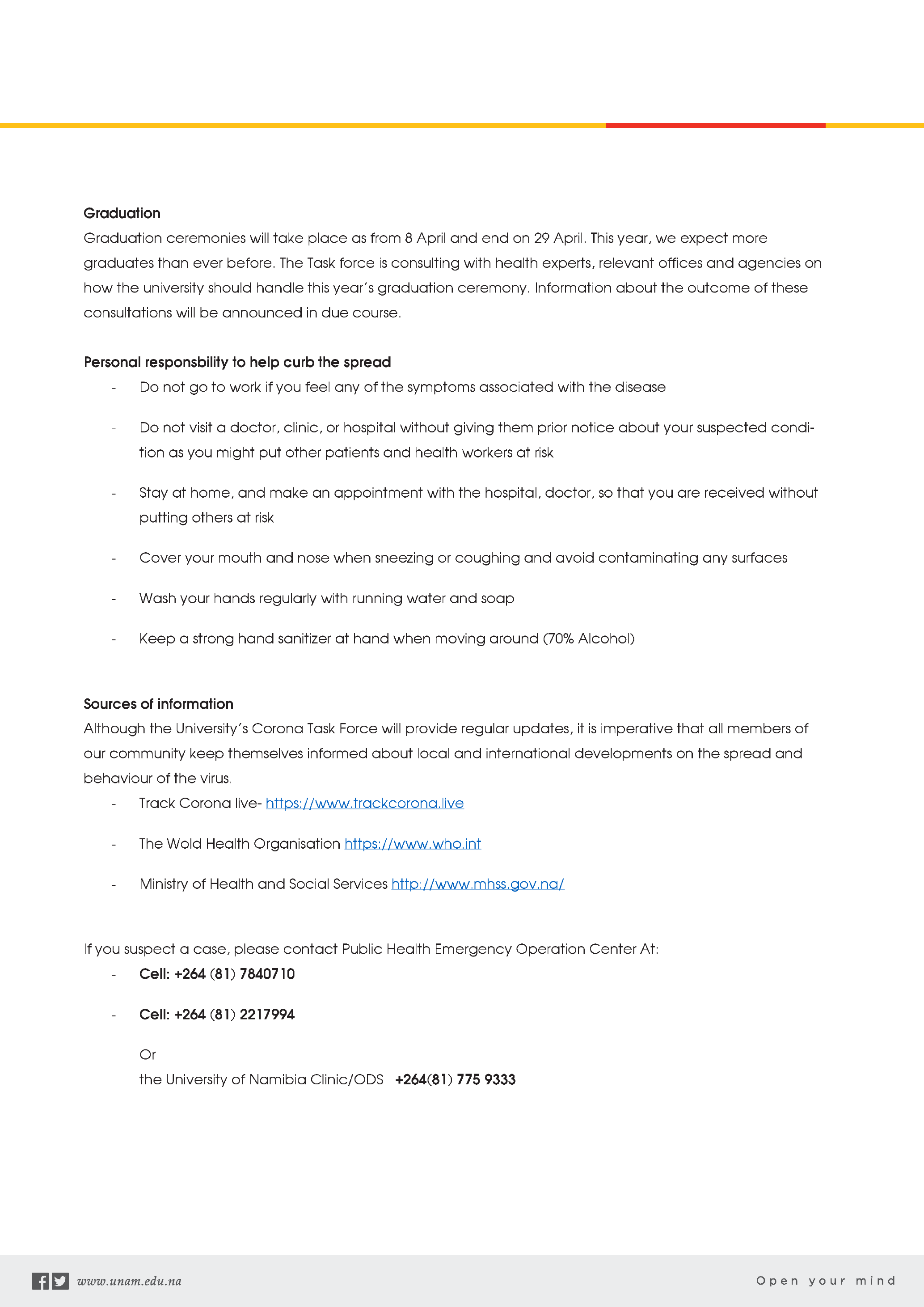 Although the University’s Corona Task Force will provide regular updates, it is imperative that all members of
