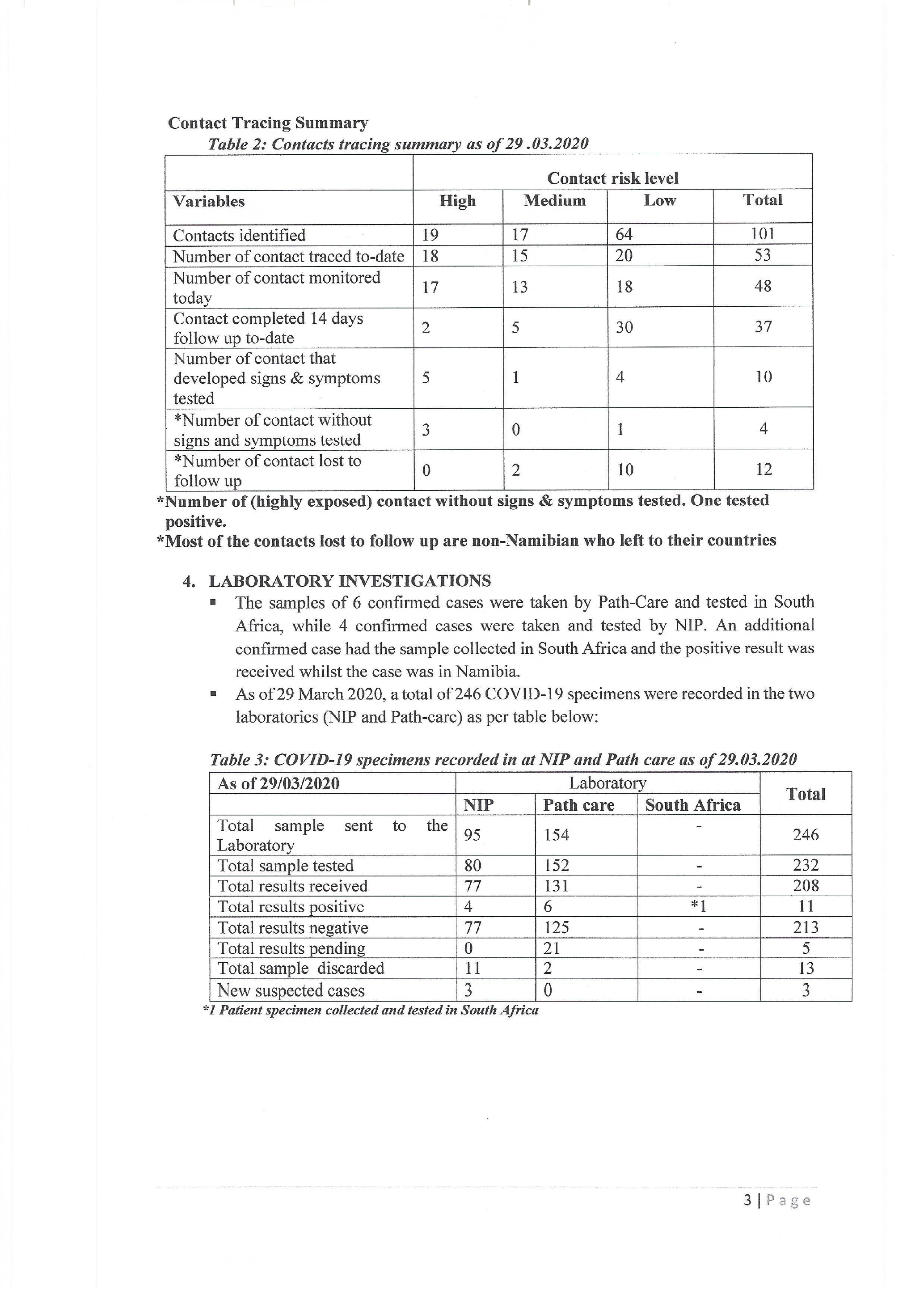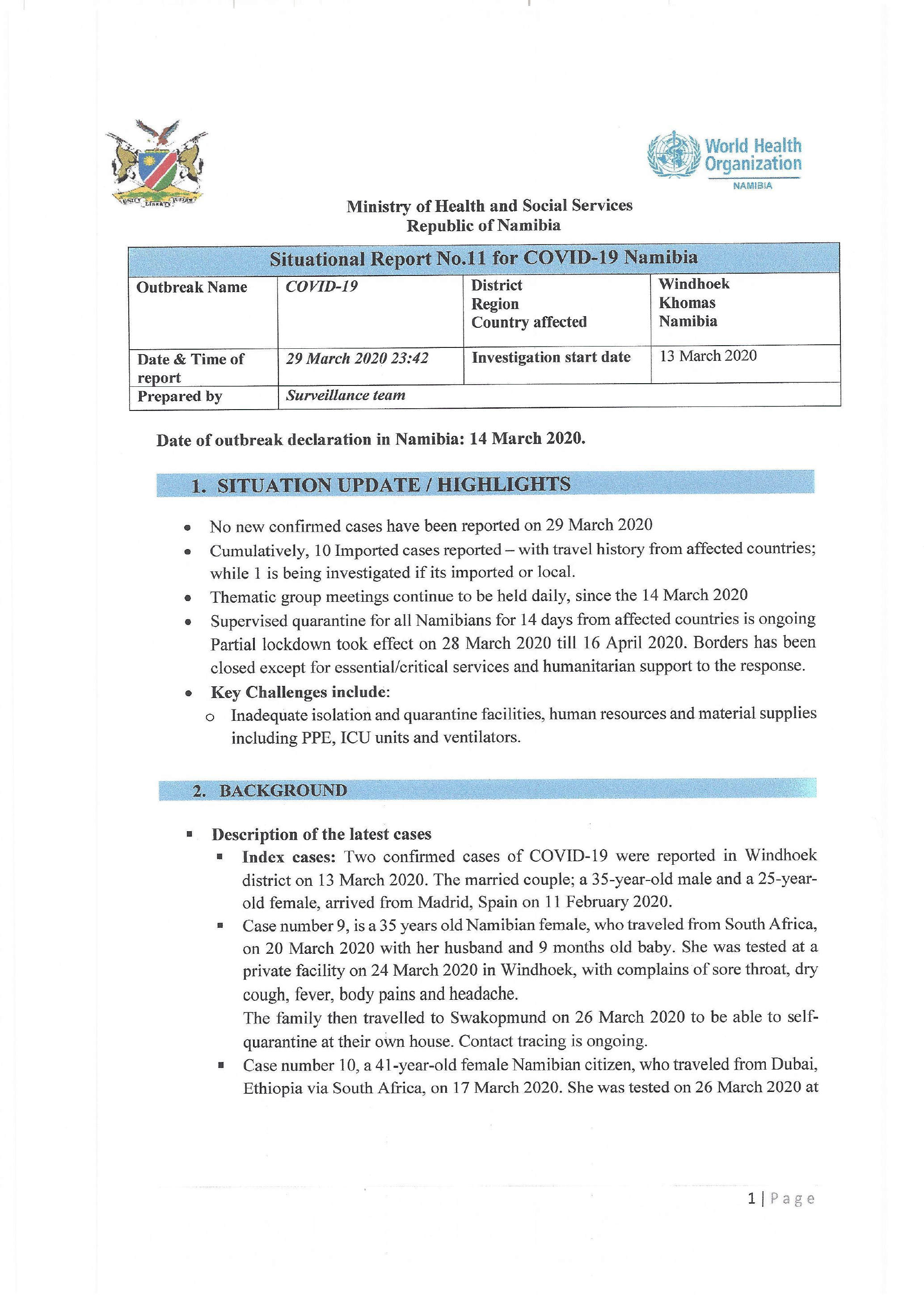 « Index cases: Two confirmed cases of COVID-19 were reported in Windhoek
